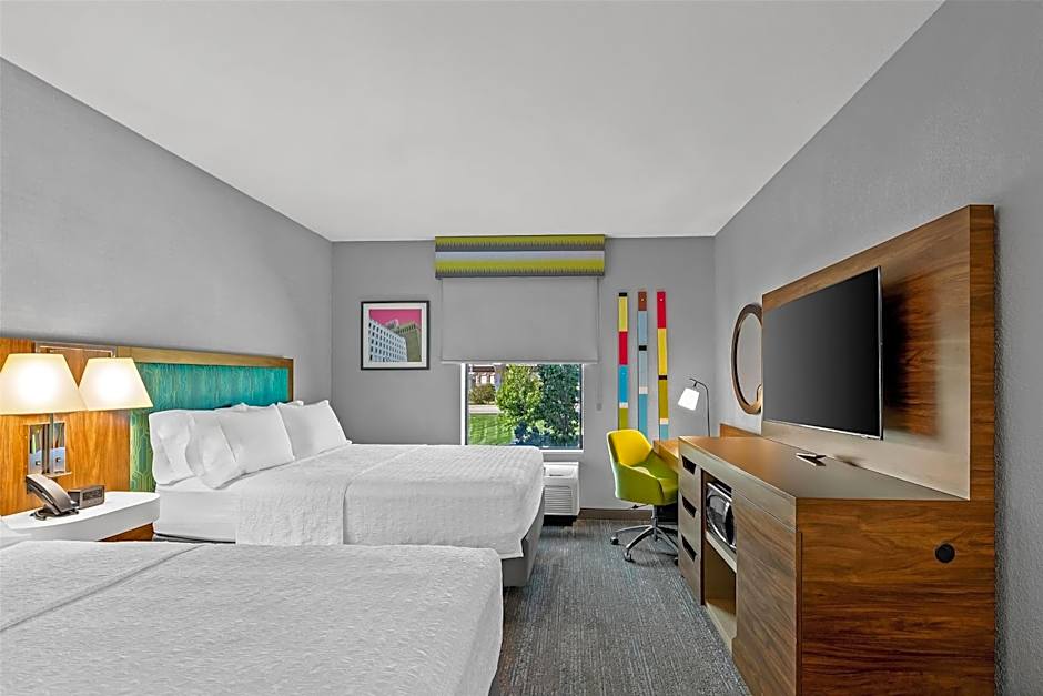 A flat-screen cable TV is provided in this hearing-accessible room, along with a microwave, fridge, and coffeemaker.